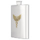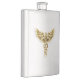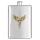 Símbolos dorados del Caduceus poligonal sobre fondo negro aislado. Símbolo de polos bajo de la medicina.