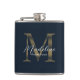 Simple Chic Script Metallic Navy Blue Gold Monogram Flask