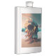 A large skull sits on top of the sand in the ocean, in the style of surreal 3d landscapes, intense color palette, redshift, vibrant illustrations, photo-realistic landscapes, textural explorations