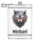 Scary growling wolf personalized flask, change the text yourself when you order. Keep the existing graphic or replace with your own.