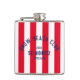 Club de Playa de Nieve, Personalizado Winter Hip Flask. Personalice su estancia con el año de su viaje de esquí, el nombre del complejo y su ubicación. Perfecto para una excursión de invierno en grupo o para una fiesta de soltero o soltera. Accesorios de juego disponibles en la colección Snow Beach Club Red Cabana Stripe Collection.