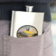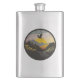 A sticker with an eagle flying over a mountain, in the style of contemporary landscape, golden light, black mountain college, fisheye lens, arts and crafts movement, mid-century illustration