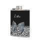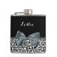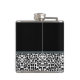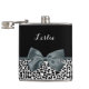 Personalice añadiendo el nombre de cualquier muchacha a este sofisticado matraz de leopardo blanco y negro de 6 onzas con una elegante cinta atada en un elegante arco femenino. Este elegante diseño de impresión animal es una imagen plana impresa y no contiene cinta real.