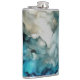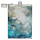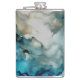A roiling, fluid landscape of color unfolds, as if storm clouds and ocean currents were painted into one. At the center, a pale, almost luminous pool of cream and washed white pushes outward, its soft edges diffusing into layers of sea-glass aquamarine and cool teal. From that light, richer blues deepen into turquoise and then to inky navy, where blackish ribbons and veined swaths cut through the composition like currents or fissures.
