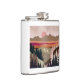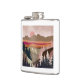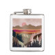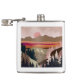 Un paisaje abstracto con colores y texturas únicos que muestran un paisaje natural con un sol naciente y dos gansos en tonos naranja, beige, marrón y rosa.