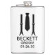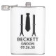 Esta petaca es perfecta para el novio. Si todos los miembros de tu cortejo nupcial van a llevar traje, este diseño con tirantes y corbata en negro sería perfecto para todos ellos. Informal pero formal. Serían geniales para una despedida de soltero o fin de semana. El título se puede cambiar a padrino, acompañante del novio, ujier, etc.
