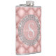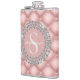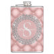 Tufted Sparkly Diamonds Blush Pink Monogram Flask. Ultra luxurious design with black tufted background design. The design includes a customizable monogram and name surrounded by beautiful sparkly diamonds. Great to get your bling on!