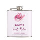 "¡Galopa, chicas! Celebren la última aventura de la novia con estilo con nuestro frasco rosa personalizado, diseñado especialmente para su fin de semana de despedida de soltera Last Rodeo. Este frasco elegante y atrevido es el accesorio perfecto para su salvaje escapada al Oeste, con un acabado rosa intenso y personalización opcional para hacerlo aún más especial."