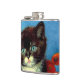 Cara con un hermoso gato Van Gogh tuxedo! Este pequeño gatito se encuentra junto a una cesta de flores naranjas sobre una mesa roja. ¡Un gran regalo para los amantes del gato y para los coleccionistas holandeses de arte!