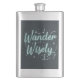 Un diseño futurista y emocionante que presenta el texto "Wander Wisely" en un tipo de letra neón, brillando contra un cielo estrellado nocturno con constelaciones, representando las infinitas posibilidades del universo.