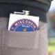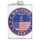 Insignia de Wisconsin con bandera de Wisconsin y bandera de los colores de EEUU, forma redondeada. Emblema de Wisconsin. Sello de Wisconsin. Colección de Estados Unidos. Milwaukee, Madison, Green Bay, Kenosha, Racine, Appleton, Waukesha, Eau Claire, Oshkosh, Janesville