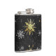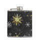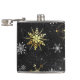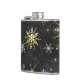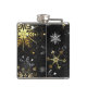 Petaca Xmas copos de nieve dorados sobre fondo negro