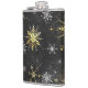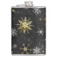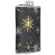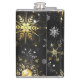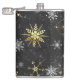 Petaca Xmas copos de nieve dorados sobre fondo negro