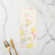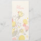 Doble cara simple doble cara sencilla, decoración de confeti estilo pétalo floral floral menú de cena en tonos rosa coral, amarillo y gris cálido. Diseñado exclusivamente por Sarah Trett. com