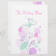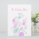 Decoración de confeti de dos caras sencilla y moderna, florido menú de cena de la recepción de bodas en tonos rosa, violeta, ciruela y verde agua. Diseñado exclusivamente por Sarah Trett.