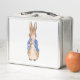 Pedro el Conejo soplando un chicle rosa con fondo blanco.