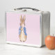Pedro el Conejo soplando un chicle rosa con fondo rosa pastel.