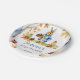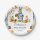 Peter rabbit cae con vajilla de ducha de bebé, placas personalizadas de fiesta de papel, un lindo conejito acuarela con una chaqueta azul sujetando hojas amarillas de roble de cestas de bellota, bonita decoración de mesa para la ducha de bebé.