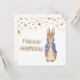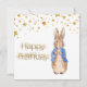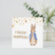 Peter el conejo con brillantes estrellas de oro Feliz cumpleaños en texto decorativo
