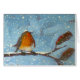 pequeño petirrojo lindo en la nieve en un día de invierno con el último de las hojas que llevan a cabo encendido otro día. ¡impresión del petirrojo de las ilustraciones originales del artista Angela Moulton por días de fiesta y más allá perfecto! pida la cantidad y consiga el descuento