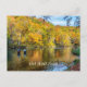 Tarjeta postal de "Recupérate pronto" con una hermosa mañana de la temporada de otoño pescando truchas en Bennett Spring en el Parque Estatal Bennett Spring. El sol de la mañana ayuda a que los árboles coloridos brillen y muestren sus colores. Esto está ubicado en Bennett Springs, Missouri, Estados Unidos. ¿Buscas más productos? Visita mi tienda: http://www.zazzle.com/timelessmomentsphtgy