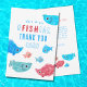 Estas adorables tarjetas de agradecimiento de peces ilustrados presentan peces ilustrados nadando alrededor de tu tarjeta con el divertido juego de palabras "esta es una tarjeta de agradecimiento o-pes-cial"! Agradece a tus invitados con un mensaje sincero que puedes personalizar en el reverso de la tarjeta. ¡La pareja perfecta para tu fiesta junto a la piscina, celebración de verano o fiestas de cumpleaños con tema bajo el mar! Invitaciones a juego disponibles.