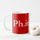 Celebración de la realización del PhD taza de 15 onzas, texto púrpura en blanco.