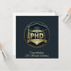 Tarjeta de saludo de graduación de Phd para un exitoso doctorado con un gorra de graduación en negro y oro con la posibilidad de añadir el año, disciplina de graduación y saludos personales.