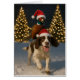 Humorous Christmas card featuring a pheasant and Springer Spaniel in an apparent truce over the Christmas period! The pheasant is riding the spaniel in a snowy scene with Christmas trees twinkling in the background.