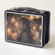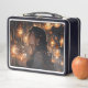 Pintura de anime detallada de una bella joven vagando reverentemente por una habitación oscura llena de farolillos colgantes.