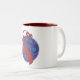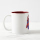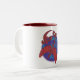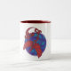 taza 11oz con una guarnición roja que representa una Phoenix roja que vuela sobre una piscina del agua azul