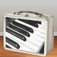 Con una elegante foto en blanco y negro de un teclado de piano, esta elegante caja de almuerzo metalizado tocará un acorde con los amantes de la música. Una buena elección para los músicos.