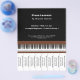 A black flyer with tear off strips and an illustration of a piano and its black and white keys and a wooden surround. Perfect for activities such as piano lessons or teacher!