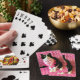 El gato de Tuxedo se ve tan bonito en estas cartas. Está en un fondo rosado caliente con una bella bandana rosada con pompas a lo largo del borde y la letra "P" bordada en el bandana. Qué divertido juego de cartas Peaches hace el gato Tuxedo. El copyright Peaches the Tuxedo Cat