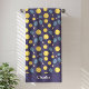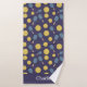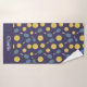 Este diseño de toalla de baño de pickleball está completo con un patrón continuo de pelotas de pickleball y paletas de pickleball sobre un fondo azul oscuro. Hay un espacio para agregar su nombre en la parte inferior de la toalla.