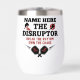 Denominación personalizada de pickleball aislante de vino tumbler. El diseño puede transferirse a otros productos similares. EL DISRUPTOR enciende este tumbler de vino fino e aislado con intensidad audaz y pinchazo visual. En el centro, un puño apretado agarra una pala junto a un rayo rojo y un emblema circular, lo que refleja una energía competitiva y un control feroz. Motivos de ojos estilizados anclan el fondo, enmarcando la cita audaz: ROMPER EL RITMO PROPIO DEL CAOS. Este diseño canaliza la interrupción de la energía con un toque moderno y elegante, perfecto para celebrar el agarre atlético, un refrigerio elegante en el patio o fanáticos y jugadores feroces. Ideal para cumpleaños, torneos, aprecio del entrenador o equipo. Personaliza con un nombre para crear un potente compañero de hidratación para ella, él, mamá, papá o cualquier otro que sea dueño de caos.