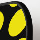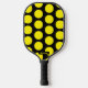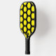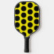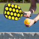 Confunde a tus oponentes de pickleball con este patrón de puntos polka negros y amarillos en tu remo. Un lado del remo tiene puntos de polka amarillos sobre un fondo negro mientras que el otro lado presenta puntos de polka negros sobre un fondo amarillo. Es suficiente para que tus oponentes se vuelvan incapaces. También hay un punto en la parte inferior de un lado, para insertar el nombre.