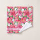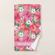 Texto personalizado. Patrón tropical de pickleball con hojas verdes y flores rosadas de hibisco sobre fondo verde oscuro. ¡Feliz uso y mejores deseos para tus futuros juegos!