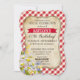 Cheque de gingham rojo picnic campestre con el diseño de la tarjeta de invitación de cumpleaños.