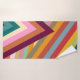 El conjunto de toallas incluye un lavabo de color rosa, una toalla de berenjena y una toalla de baño de diseño retro de los años 70, con un Vs de fondo recubierto de tres plantas, todo de colores retro.