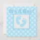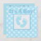 Pies de bebé azules invitan a una ducha de bebé para ese recién nacido especial. El diseño tiene un par de pies de bebé rosados y las palabras "Es un niño" . Personalizar con los datos de su fiesta.