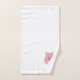 Bath towel set, consisting of a face cloth, hand towel and bath towel with a pig design. You can have this bath towel set in any colour by changing the background just click the edit this design button and choose the colour of your choice. You can also customise the text to read whatever you want. Should you require any help with customising then contact us through the message link on this page. Pig design bathroom towel set