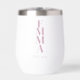El audaz nombre de serif en rosa polvoriento apilado verticalmente sobre una base blanca con un pequeño "est. 2024". Diseño tipográfico depurado con contraste suave para un acento refinado de vajilla.
