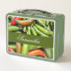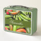 incluye una foto de un montón de pimientos verdes y picantes en las cajas de almuerzo