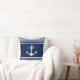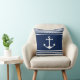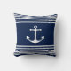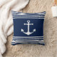almohada náutica a rayas azules y blancas con gran ancla en la parte delantera. Bonita decoración para una casa náutica.