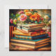 Pile antiguo de libros y flores de época