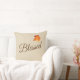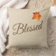 Esta almohada de tiro se muestra en un color natural con una impresión de texto Bendita de Acción de Gracias con un acento de hoja de caída de bonito. Personalizar este artículo o compre como está diseñado.
