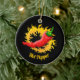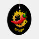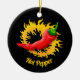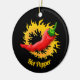 Pimienta picante roja con círculo de llama. Color de fondo personalizado. Texto personalizado en ambos lados.