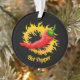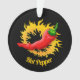 Pimienta picante roja con círculo de llama. Color de fondo personalizado. Texto personalizado en ambos lados.