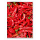 Foto de muchos pimientos rojos calientes de ají con tallos verdes afuera a la luz del soleado día de verano. Foto digital.